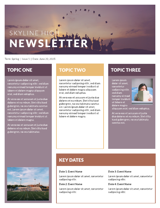 Skyline high classroom newsletter template. 30 editable classroom newsletter templates (weekly / monthly). Download and use our professional education newsletter templates to take the guesswork out of the layout and to focus on reporting the news on education theme. This newsletter template is sent to the members of an organization or a society. A newsletter is a document used to share information on the past events or upcoming ones during a set time. Clear instructions guide you through each step of creating attractive and useful content. A newsletter is generally about one main topic that is published and distributed regularly. How do attract students and alumni donations with a bare bones budget? Free newsletter templates are available online for print newsletters and for web use. With the education responsive email newsletter template, you can update all your students or their parents on this template is built with html and is fully responsive so it looks great on any device. Note this template is downloadable in pdf format only. Choose your favorite education newsletter templates and customize them with our drag & drop email editor. How many preschool newsletter templates does your preschool use?